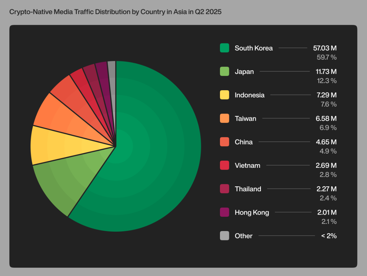Asia’s crypto media doesn’t move in a straight line. It surges, stalls, reorganizes, and then returns sharper, reshaped by the way people actually read, search, and share information. In Q2 2025, that pattern became clearer than ever: South Korea and Japan together drew more than 70% of all crypto-native media visits in Asia, giving them unmatched influence over the region’s rhythm and narrative direction. Outset Data Pulse, a continuous intelligence framework by Outset PR that uses Similarweb data, on-the-ground surveys, and PR-native metrics, has already mapped crypto media shifts across Eastern Europe and Latin America between April and June. These regions faced different pressures, but Asia stood out for how strongly loyalty shaped the market. Returning readers became the engine that pushed outlets ahead. The following sections unpack how Asia’s crypto news ecosystem actually works: by region, by habit, by trust, and increasingly, by how machines interpret content. East Asia Leads Asian Crypto Outlets East Asia is the continent’s media anchor. South Korea’s 57 million visits and Japan’s 11.7 million place the region firmly at the center of Asia’s crypto information flow. Image sourced from Outset PR Korea’s biggest outlets Coinpan, Coin Readers, BlockMedia, and TokenPost have become part of readers’ daily routines. They’ve grown from being just news sites to information hubs deeply integrated into how markets move. Japan mirrors this structure but with a different tempo: rapid updates, real-time commentary, and constant visibility on X, where CoinPost maintains one of the strongest live-news presences anywhere in Asia. “East Asia has built something rare in today’s media world,” says Maximilian Fondé, senior media analyst at Outset PR. “Readers return to these outlets out of habit, the same way you go back to a café where they know your order. They know the tone, they know the context, and they feel understood. That everyday connection is what gives the region’s media its strength.” Outset Data Pulse refined composite score and engagement index reinforce this picture. These metrics show not only who attracts the largest audience, but who keeps readers engaged, rewarding outlets that combine scale with loyalty and structured reporting. This contrasts sharply with Eastern Europe, where search volatility wiped out visibility for more than half of crypto outlets earlier this year. East Asia’s stability comes from something algorithm updates can’t replicate: audiences who already know where they want to go. One exception in the data is CoinPan, which posted some of the strongest engagement signals but fell out of the top-tier ranking due to a traffic dip in Q2. Under Outset PR’s methodology, consistency matters as much as depth; strong engagement alone isn’t enough to stay in the top group. Southeast Asia’s Crypto Publishers Grow Faster If East Asia is the anchor, Southeast Asia is the growth engine. Across Indonesia, Vietnam, and Thailand, the combined traffic clears 12 million visits, and with Malaysia and Singapore’s smaller but loyal communities added in, this part of Asia may be smaller than Korea on paper, but it’s growing at a much faster pace. Here, crypto media doesn’t rely on a single channel. It thrives on a blend of newsroom-style platforms, creator ecosystems, Telegram groups, and bilingual local formats. Image sourced from Outset PR Indonesian outlets like CoinEdition push hard into structured data and multilingual SEO, making their content highly discoverable. Vietnam’s crypto media relies on community-driven distribution, where native-language posts spread through Facebook groups faster than traditional news cycles. “Readers in Southeast Asia want speed, but they also want identity,” Fondé says. “They want to hear from someone who understands their local reality.” This is one reason the March 2025 Google update, which decimated Western Europe’s crypto visibility, barely impacted Southeast Asia. Audiences here never relied solely on search in the first place. Asian Crypto Audiences Return to the Same Outlets Across Asia, 54% of all crypto-native visits are direct. That means no search, no social push – just readers going straight to the source. This level of loyalty is extremely rare. In Latin America, direct traffic appeared only among a small group of top performers. In Western Europe, it collapsed almost entirely after algorithm changes. Asia is different: it operates on routine. Korea checks crypto news throughout the day. Japan uses X as a real-time wire service. Indonesia blends local newsrooms with creator-led discussions. Vietnam follows trusted native-language sources and regional groups. Image sourced from Outset PR “Direct traffic is the strongest signal of trust,” Fondé says. “If more than half of readers go straight to crypto-native sites, it means they’ve already chosen where they want to be.” This loyalty makes Asia’s media ecosystem remarkably stable. When sentiment dips globally, Asian audiences don’t scatter but stay anchored to familiar outlets. Emerging Markets Across South and Central Asia Beyond East and Southeast Asia, South and Central Asia present a quieter but steady growth curve. These markets aren’t large individually, but they build readership through consistency, education, and clear editorial structure. Taiwan and Hong Kong balance local and cross-border audiences with bilingual coverage. Malaysia, Singapore, and the Philippines maintain smaller ecosystems yet show reliable reader engagement month after month. These regions resemble the early stage of the LATAM ecosystem: small but structurally improving, with a growing emphasis on transparency and reader education, especially around RWA tokenization, AI-integrated chains, and early-stage regulation. Regulation Makes Crypto Media Stronger in East Asia Than in Other Asian Regions Japan and South Korea operate un